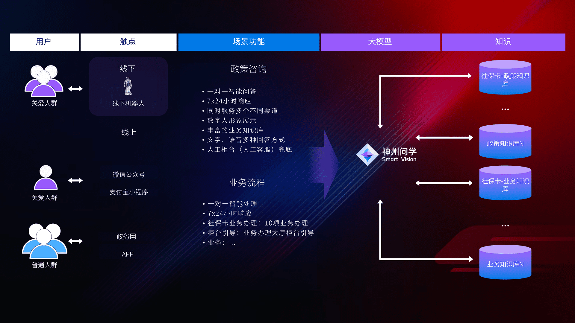 • 线上线下全覆盖:线上提供微信公众号、、支付宝小程序、、、、政务网、、、、app多种渠道,,,,与线下机器人形成完整服务体系。。